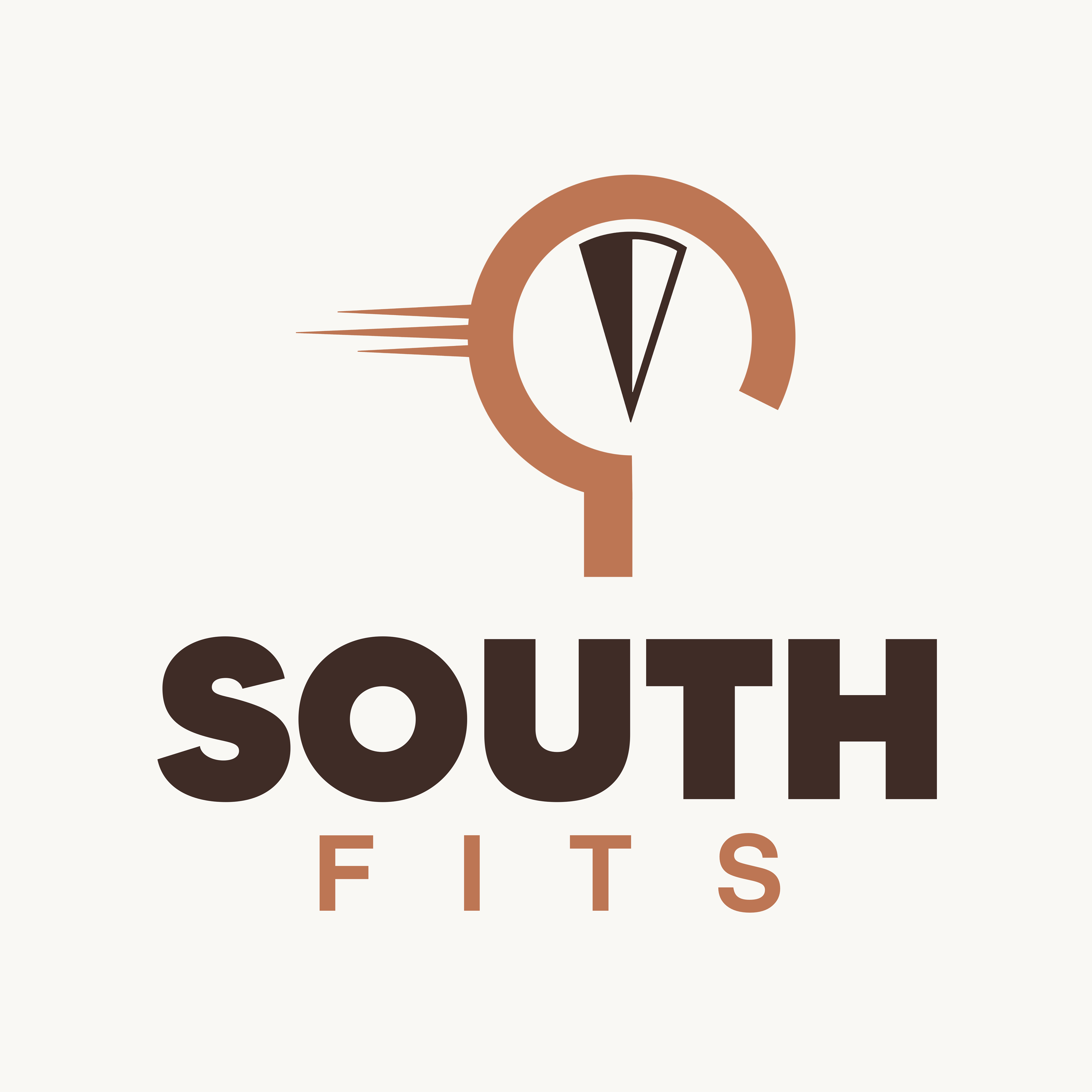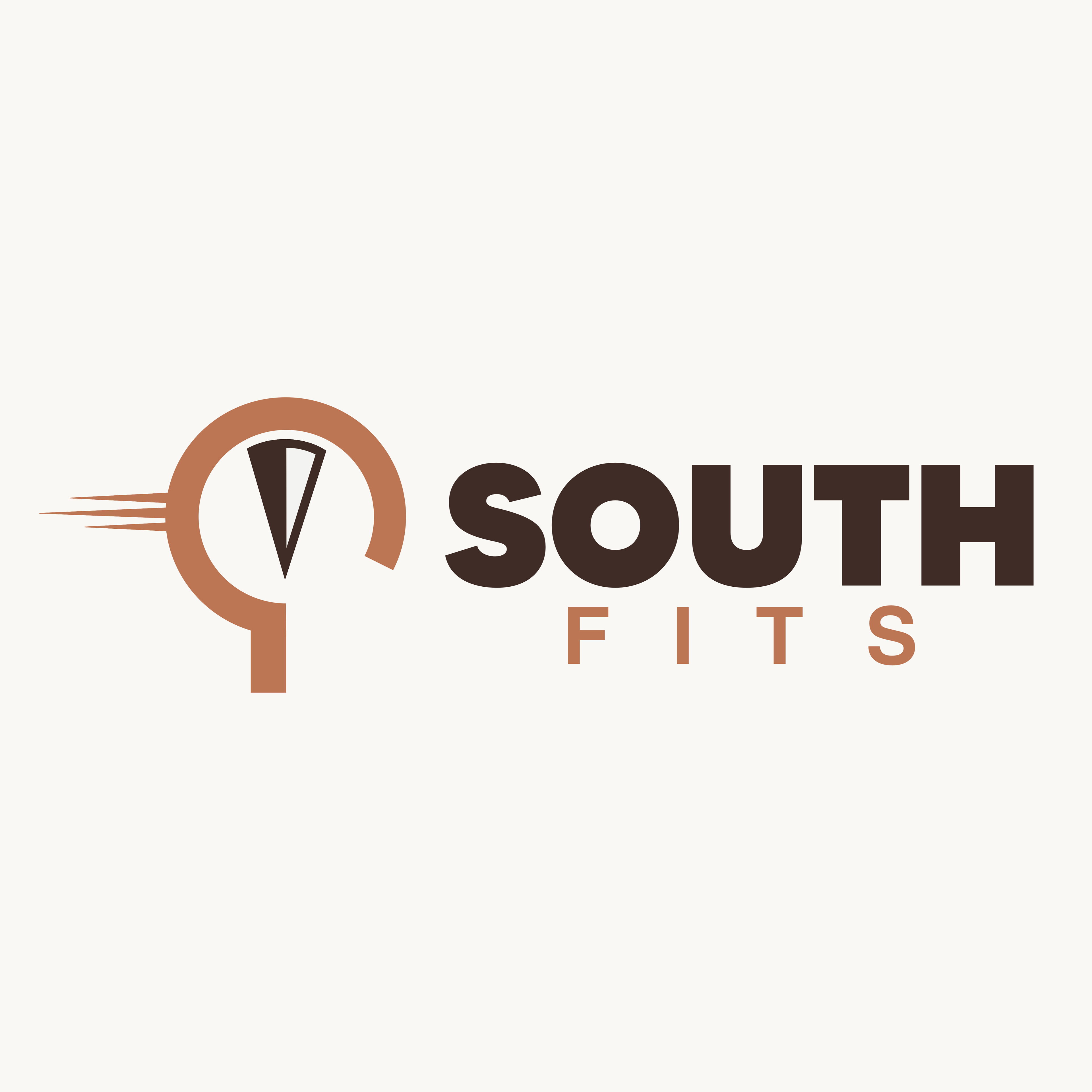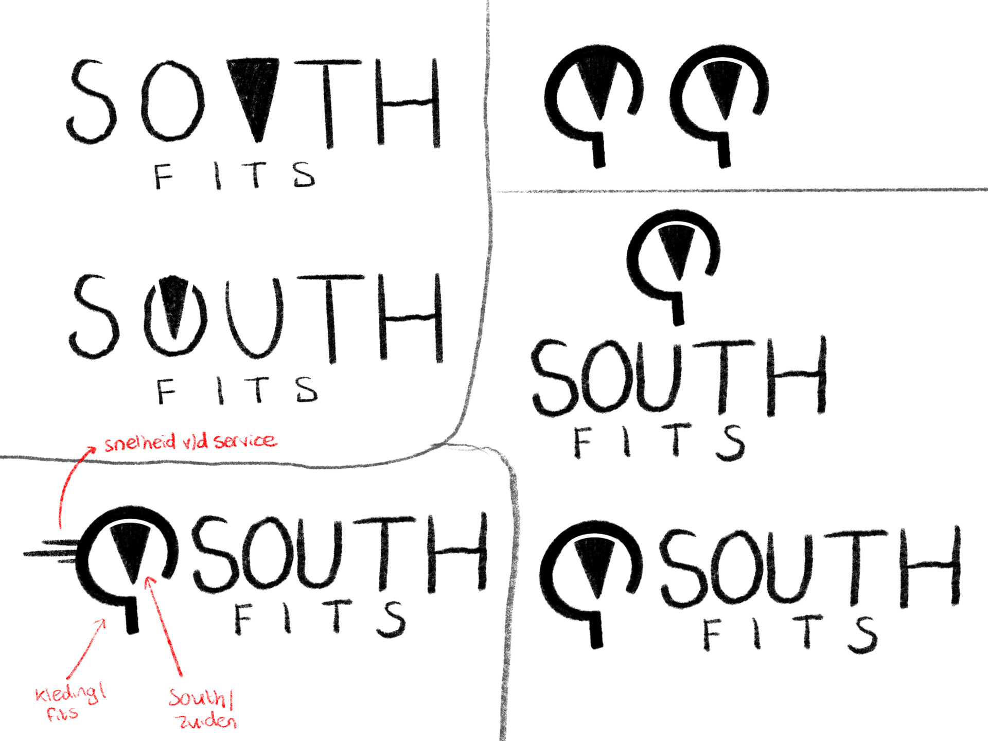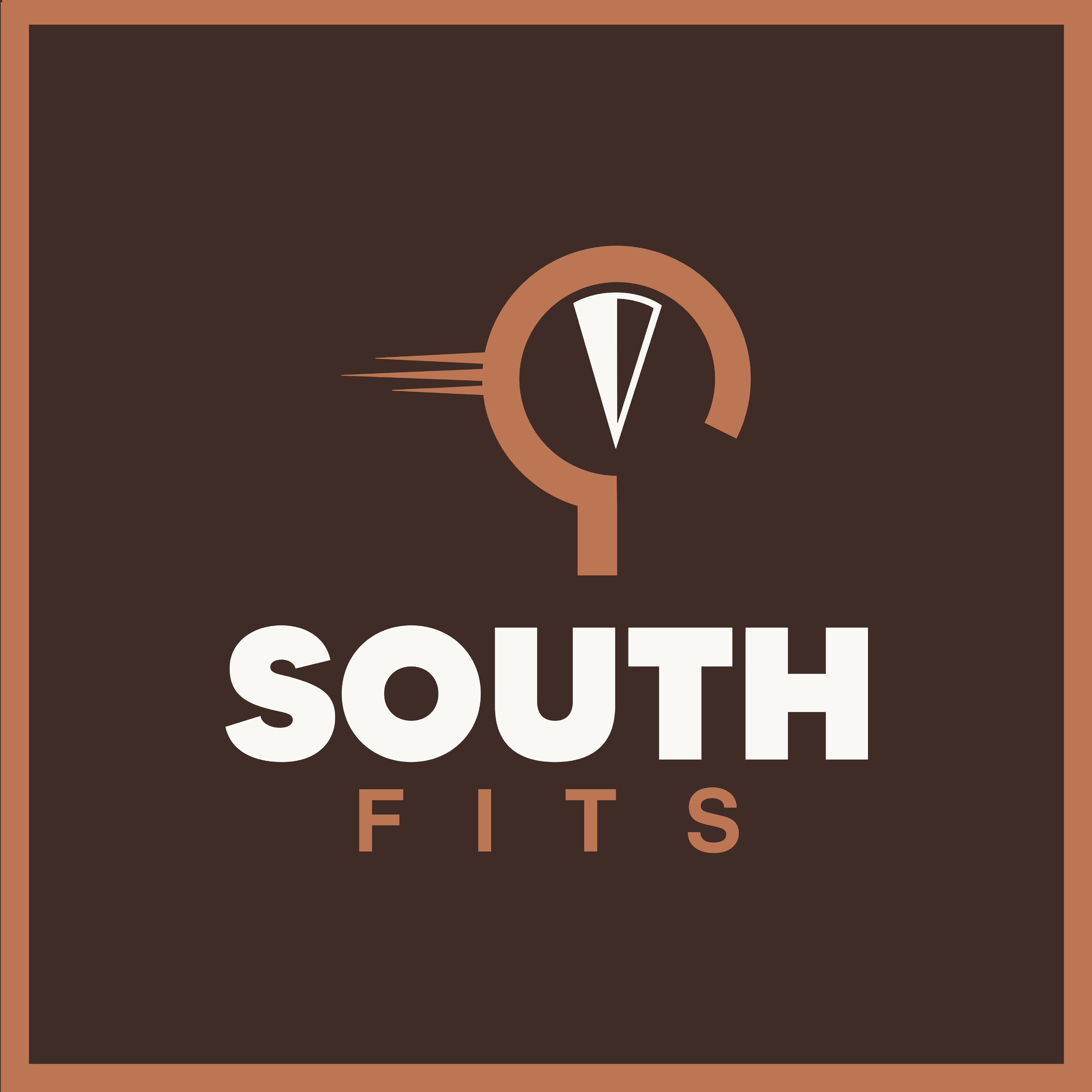 Het uiteindelijke ontwerp combineert een kompas in zuidelijke richting, die verwijst naar ‘South’, met een deel van een kledinghanger als verwijzing naar ‘Fits’. De strepen die aan de hanger zijn verbonden staan voor snelheid, passend bij de snelle service van het bedrijf. De simpele, strakke stijl benadrukt betaalbaarheid: geen overbodige luxe, maar goede basics. De vetgedrukte lijnen en het stevige lettertype versterken het gevoel van betrouwbaarheid.