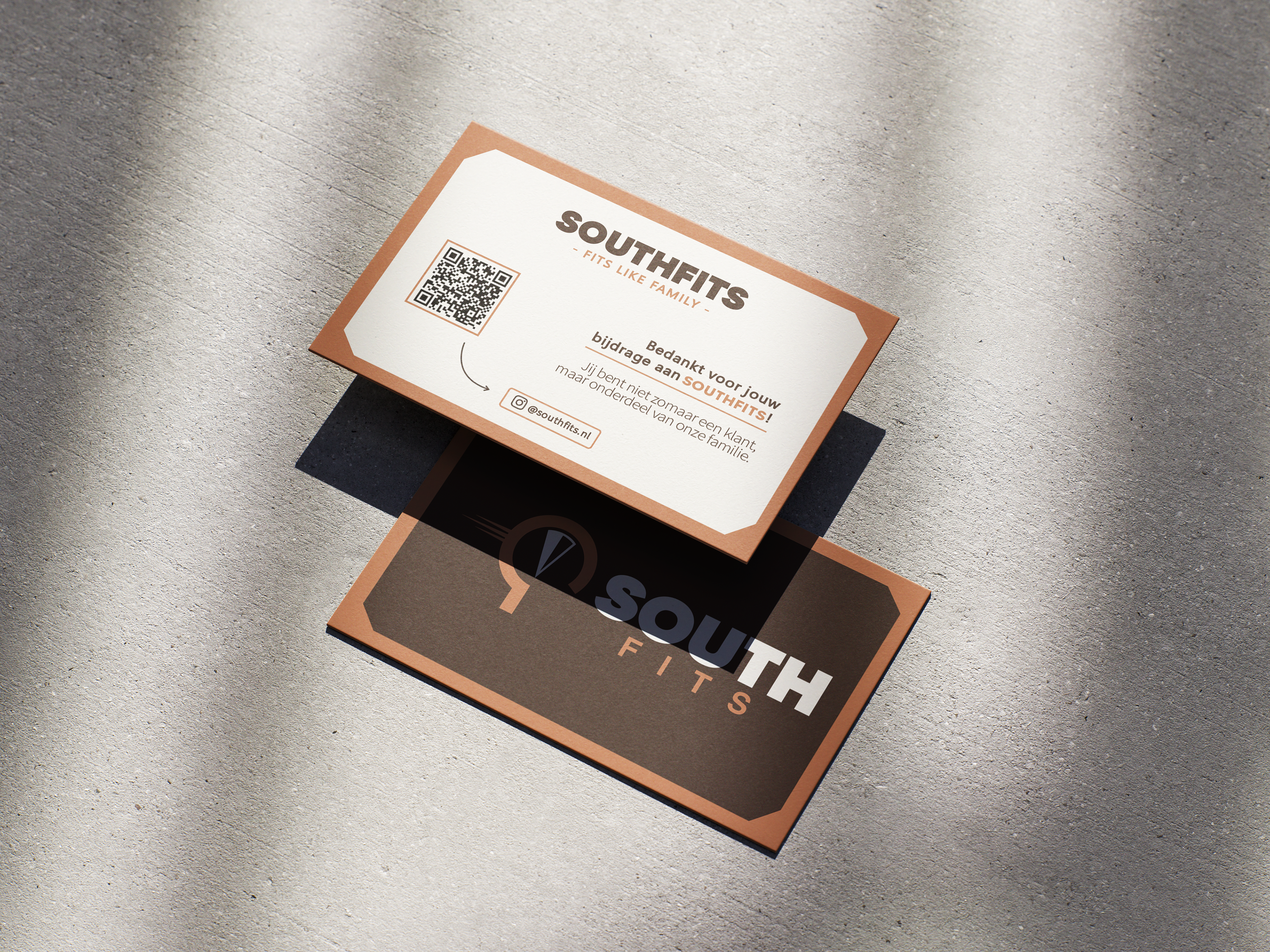 In 2025 ontwierp ik voor SouthFits het eerste logo voor de opstart van het bedrijf, samen met een bijpassend visitekaartje en socialmediaposts. De eigenaar gaf een paar duidelijke eisen mee: een strakke stijl, een vet lettertype en een overzichtelijke uitstraling. Verder kreeg ik volledige vrijheid. De belangrijkste kenmerken van SouthFits zijn betaalbaarheid, betrouwbaarheid en snelle service, en die heb ik als uitgangspunt genomen voor het logo.