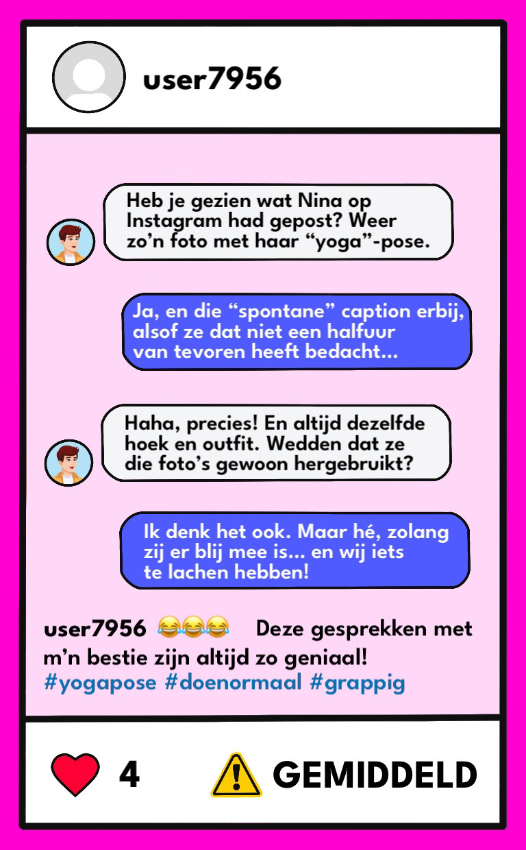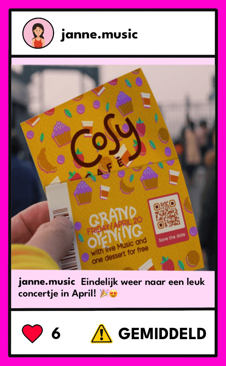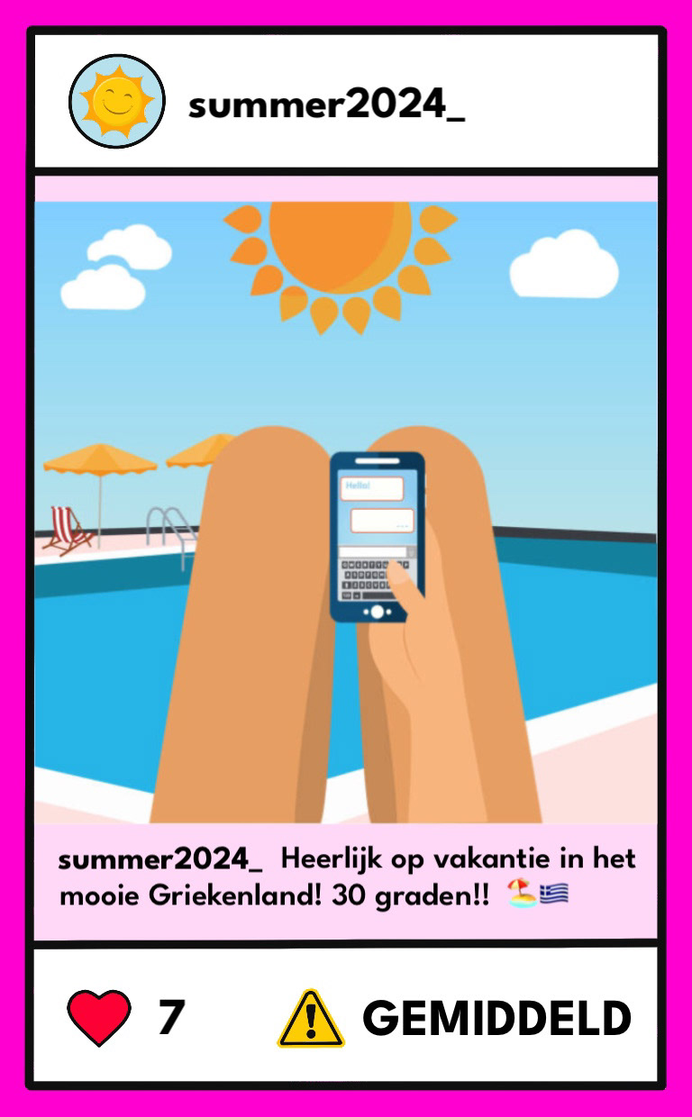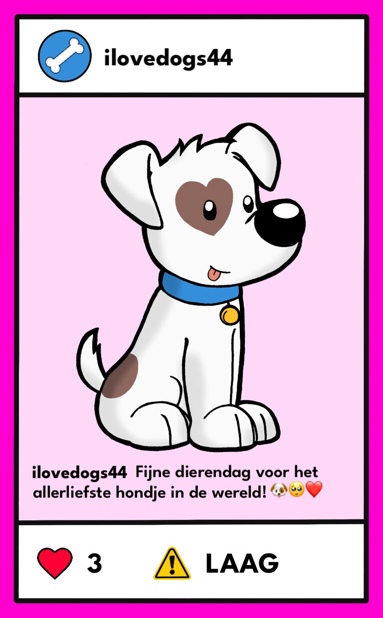 Dit zijn de post-kaarten van het kaartspel. Deze stellen Instagram posts voor die spelers kunnen plaatsen, ieder met een eigen risiconiveau. Er zijn posts met een hoog, gemiddeld of laag risico op cybercriminaliteit. Met de posts kun je ook een bepaald aantal likes verdienen.