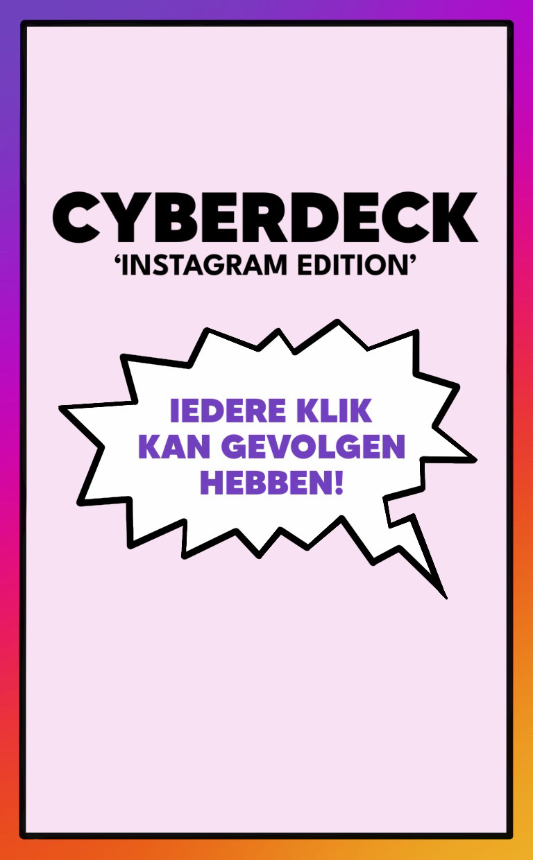 In deze studio-opdracht stond een zelfgekozen probleem op een digitaal platform centraal. Ik koos voor Instagram en het probleem van cybercriminaliteit, iets wat daar regelmatig voorkomt. Na uitgebreid onderzoek kwam ik tot de conclusie dat vooral jongeren tussen de 15 en 25 jaar kwetsbaar zijn: zij gebruiken Instagram intensief, maar zijn zich vaak niet bewust van de gevaren, gevolgen en verschillende vormen van cybercriminaliteit. Daarom werd het doel van mijn project om een veiligere en bewustere Instagram-ervaring voor deze doelgroep te creëren, in de vorm van een kaartspel.