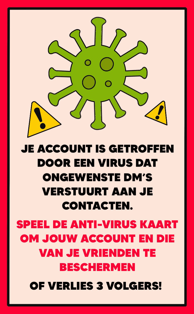 Dit zijn de jokers van het kaartspel. De jokers helpen je met vooruitgang in het spel door bijvoorbeeld een post viraal te laten gaan, de likes van je post te verdubbelen én een cybercrime aanval af te wenden en deze door te spelen naar een andere speler.