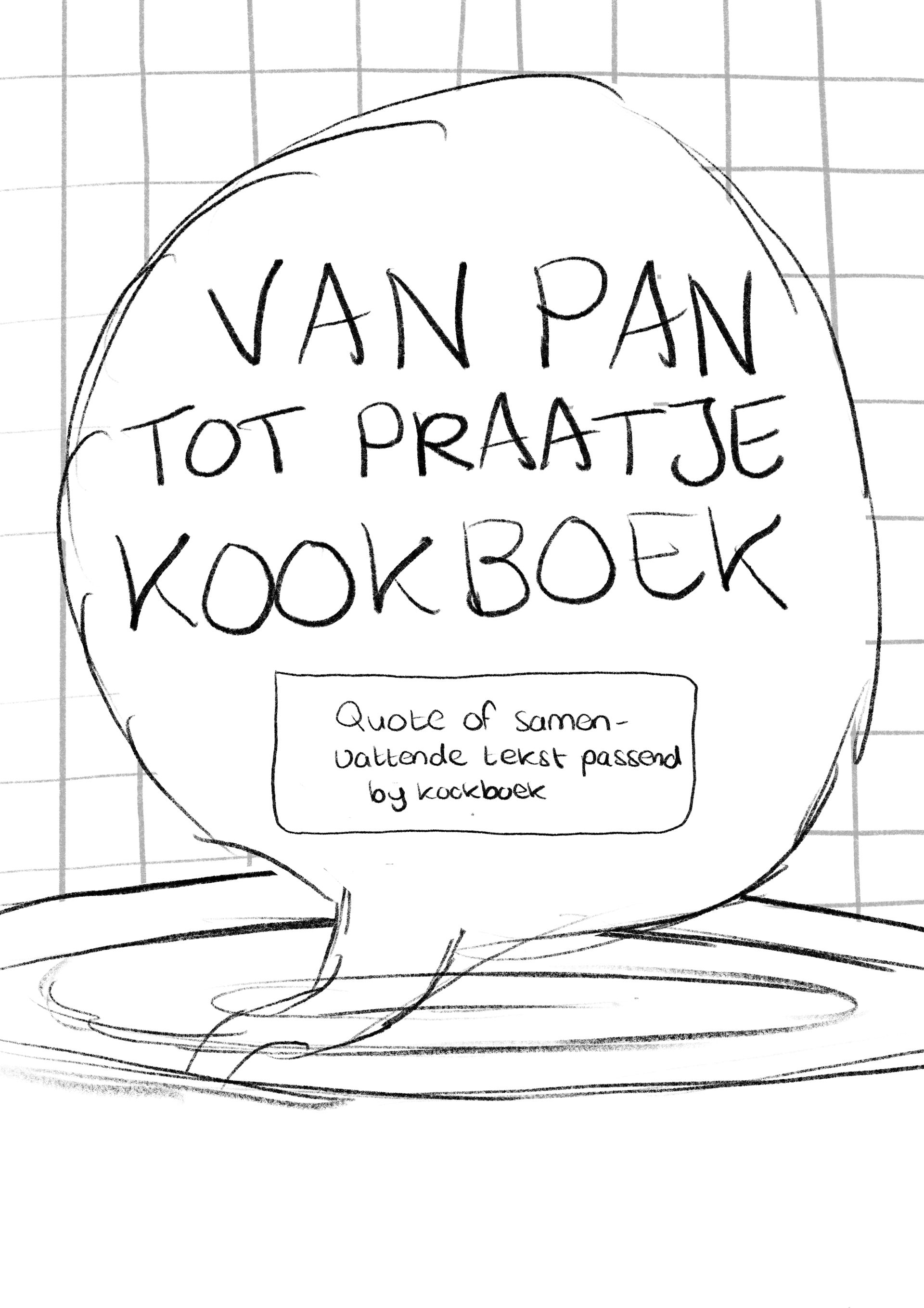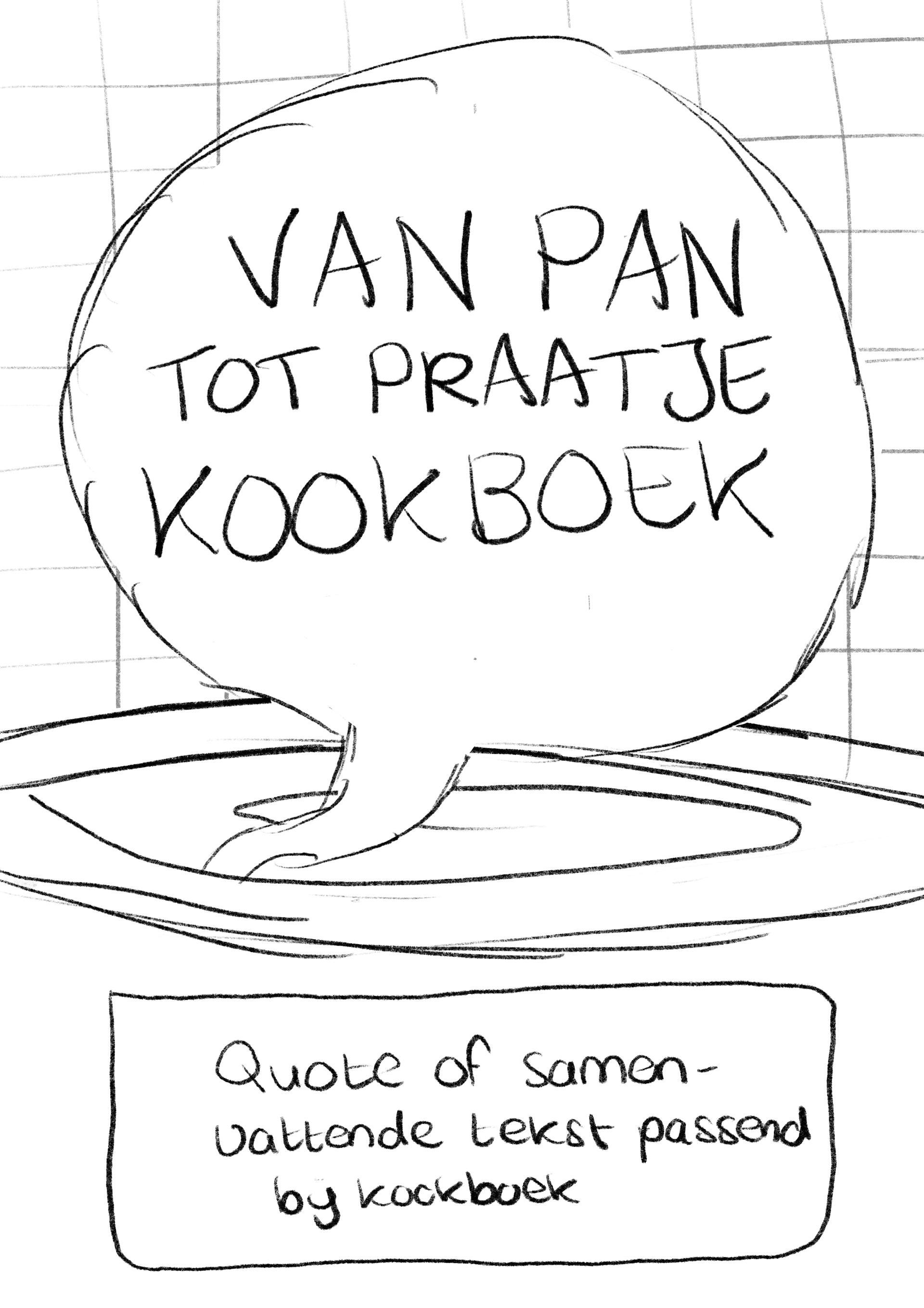 Dit zijn de versies van het logo en de kaft van het kookboek die ik heb ontworpen voor ons concept 'Van Pan Tot Praatje'.